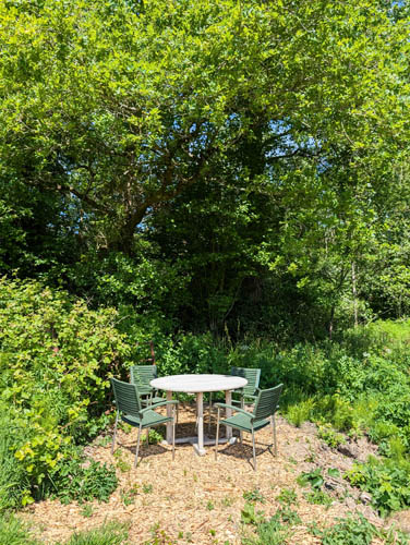 Close to the stream and looking into the woodland, it is a haven for wildlife and bird watchers.