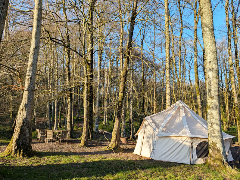 Let’s face it, small tents aren’t always the most comfortable, especially with our unpredictable British weather! Our high-sided tents give you much more height inside than a standard bell tent. Enjoy the magical experience of staying under a clear roof. Make the most of the beautiful views at Wytch Wood – looking up into the trees or at the stars at night.